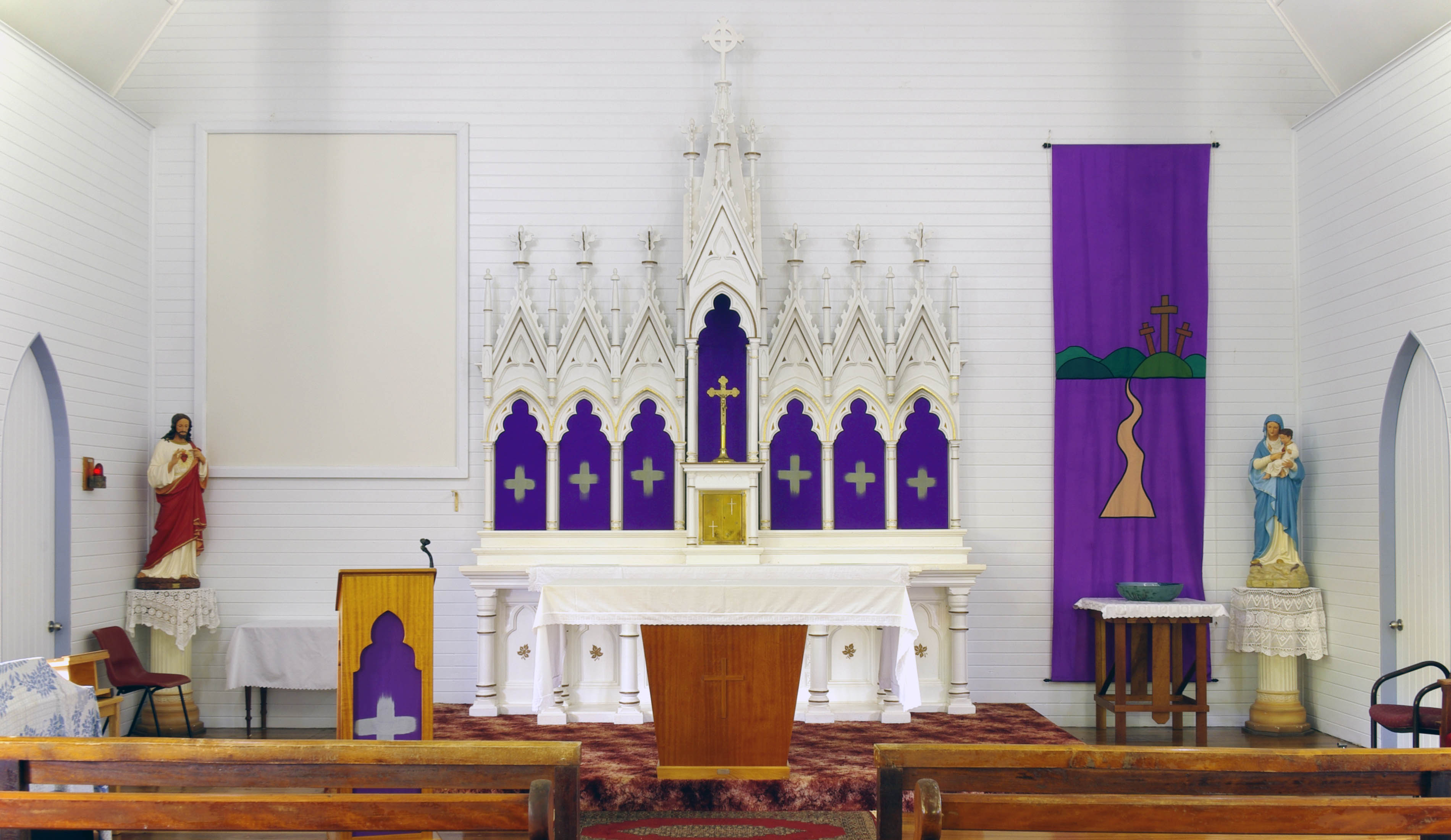 Churches: St James in Malanda (Google map), Our Lady of Consolation & St Patrick in Yungaburra (Google map), and St Rita of Cascia in Millaa Millaa (Google map).